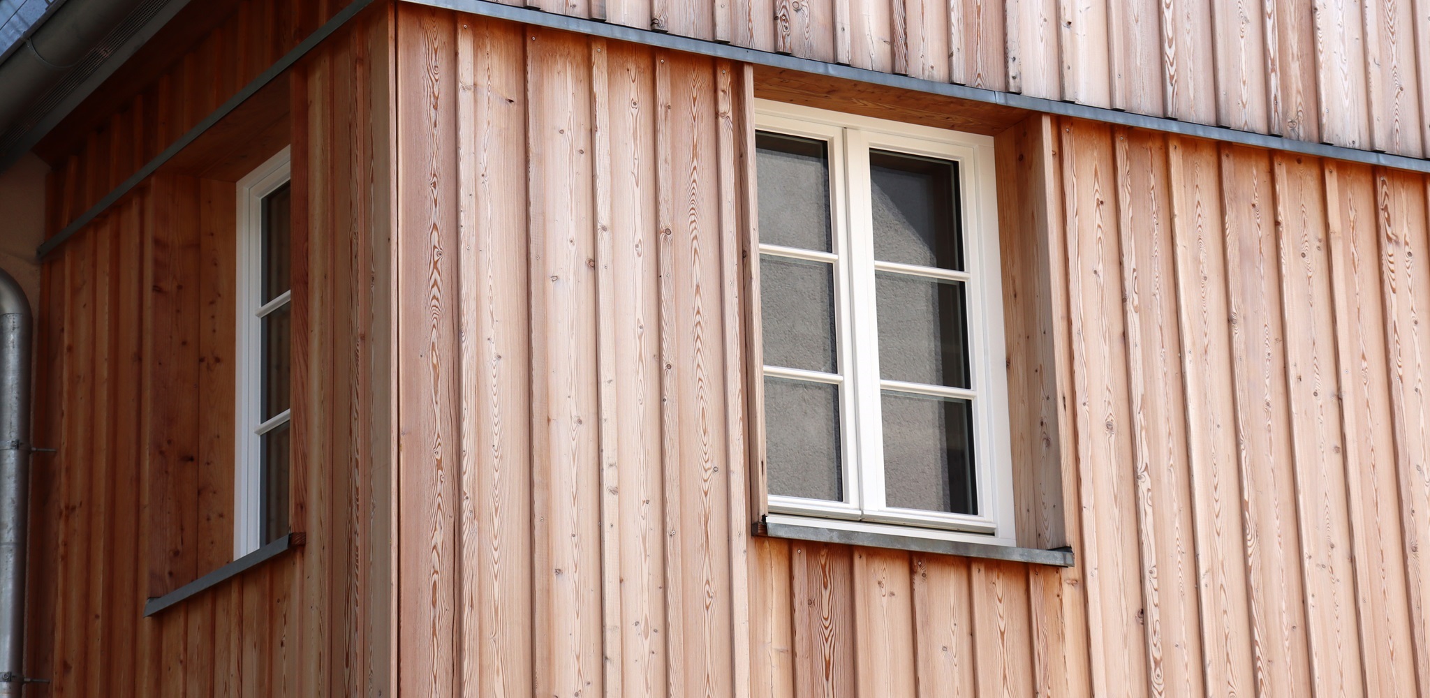 Wir lieben Holz! und arbeiten daher gerne mit unbehandeltem Naturholz. Besonders attraktiv sind unbehandelte Naturholzfassaden; insbesondere aus Lärchen- und Douglasienholz, die durch ihre Natürlichkeit und Patina einen ganz besonderen Charme entwickeln. Sie erreichen eine hohe Lebensdauer- und das ohne weitere Nachbehandlung.